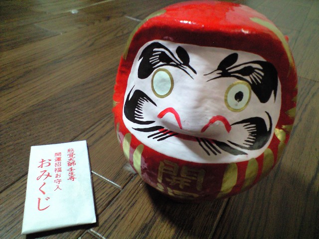赤は勝負ダルマとして売ってまして、去年も赤を買った。